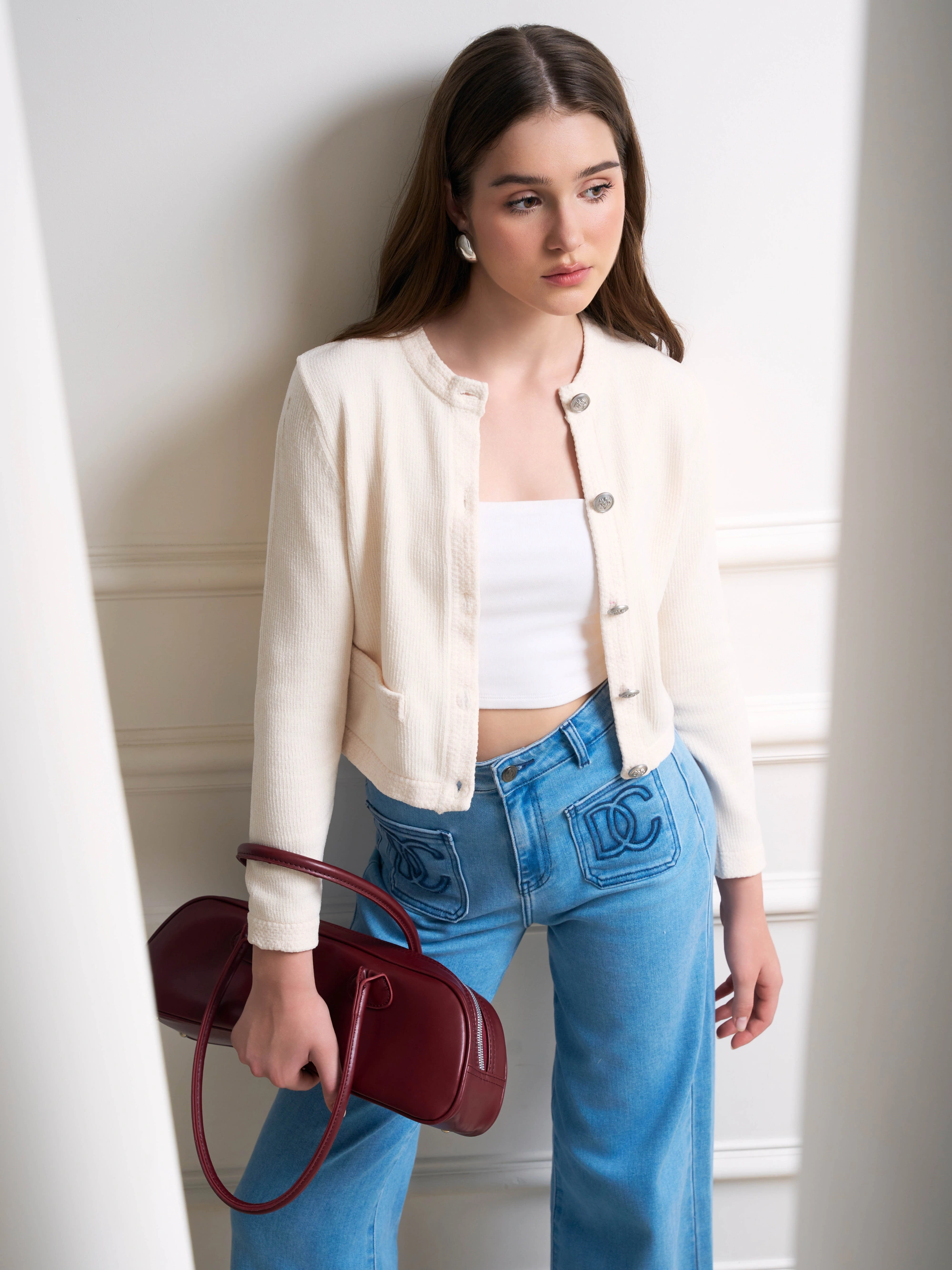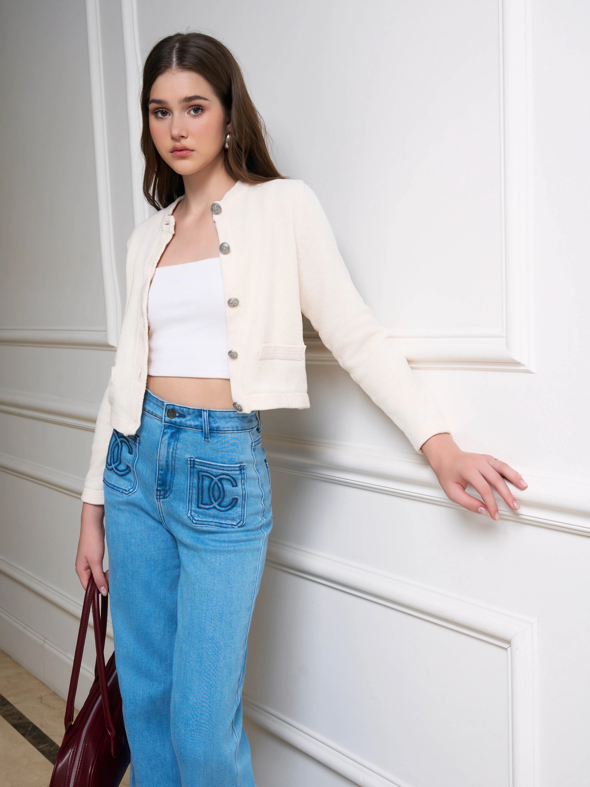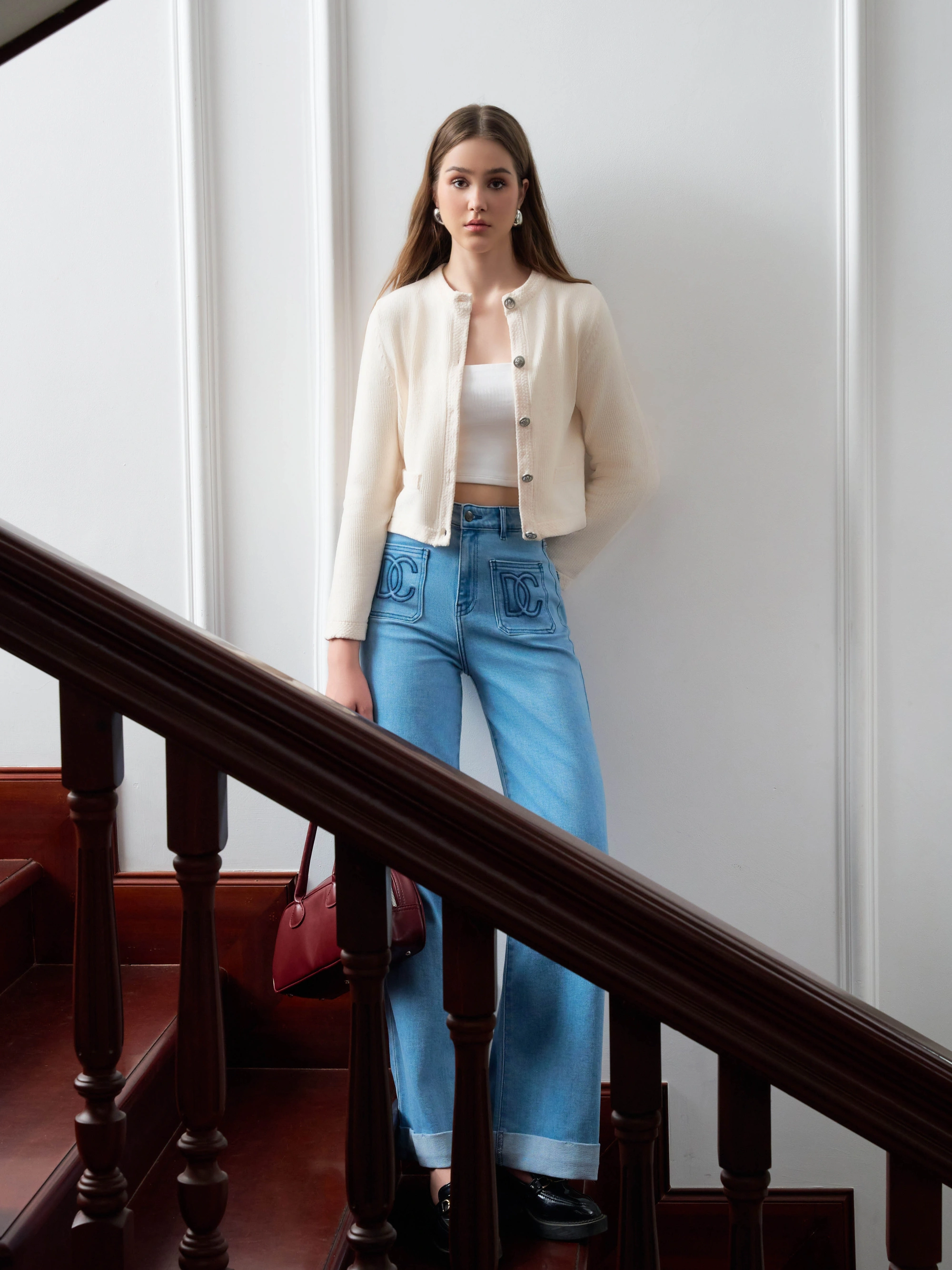 Quần Jean ống suông gấu lật túi thêu DC