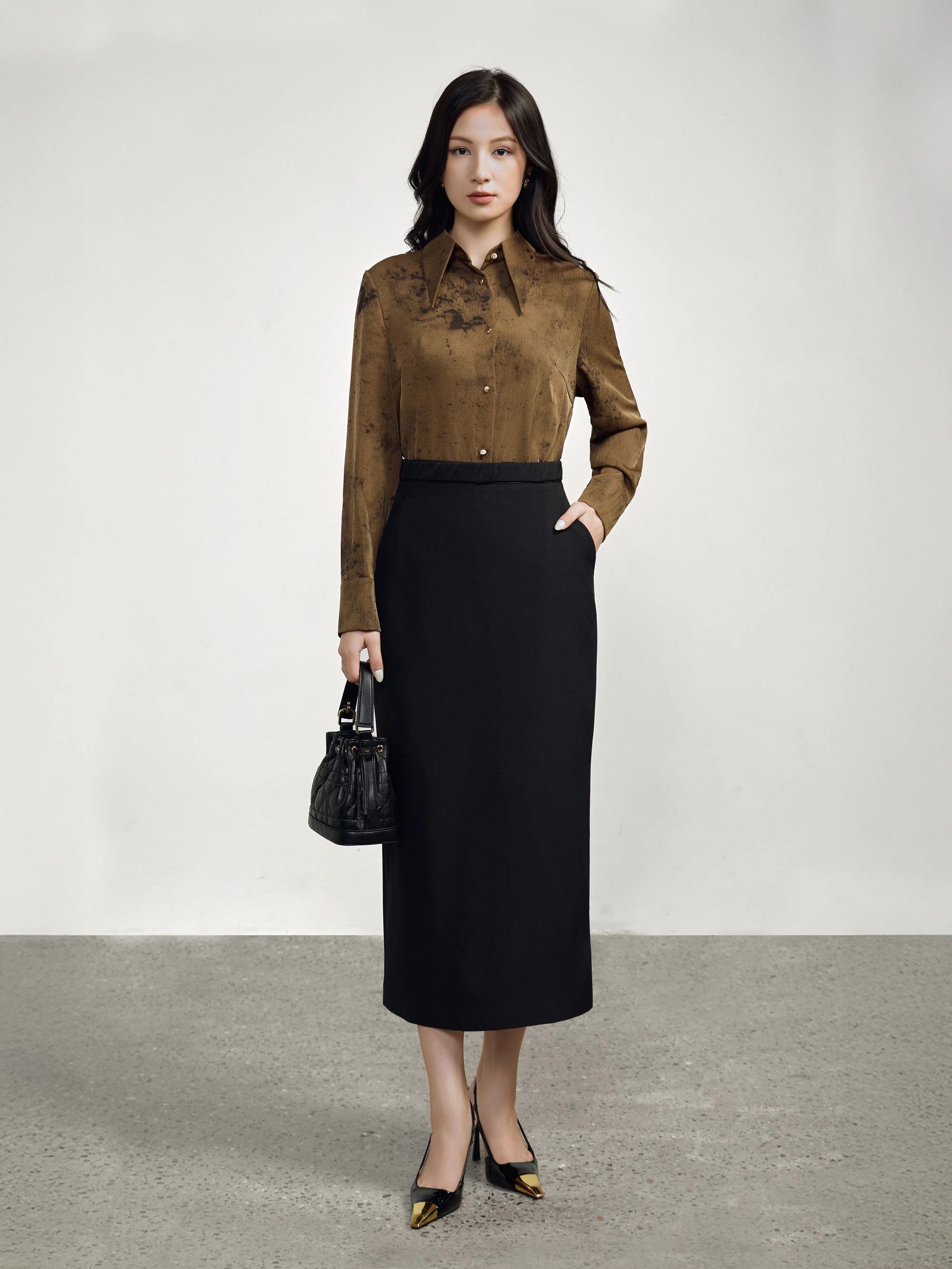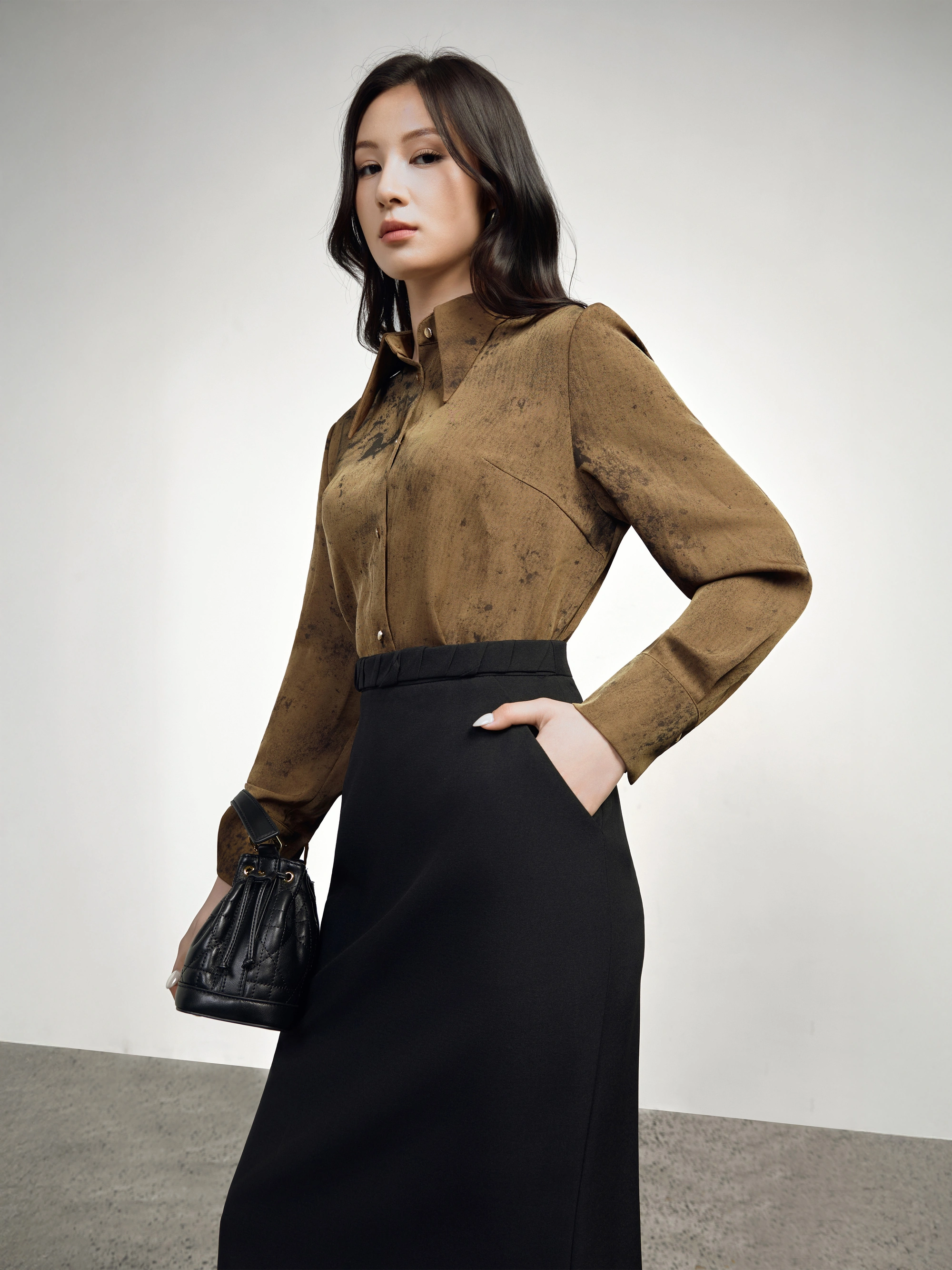 Bề mặt vải có hiệu ứng loang, tạo chiều sâu thị giác.