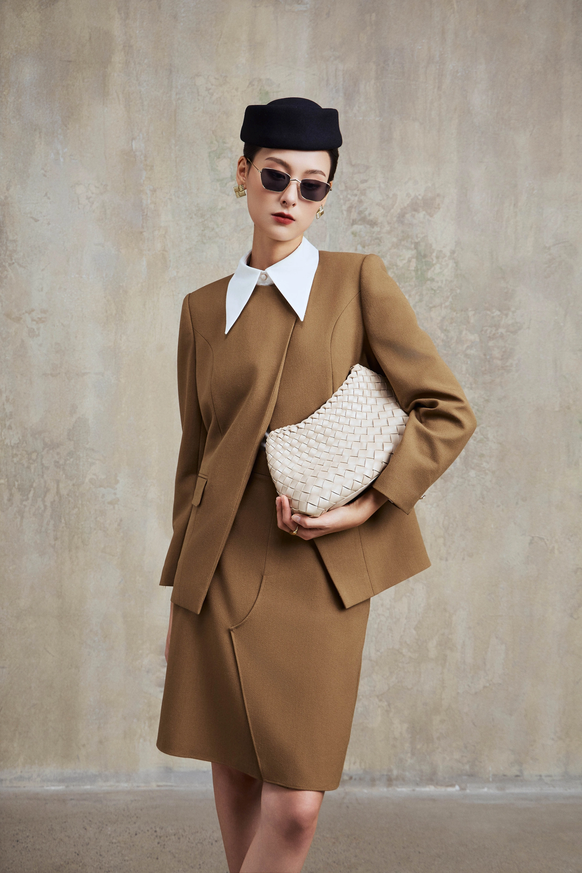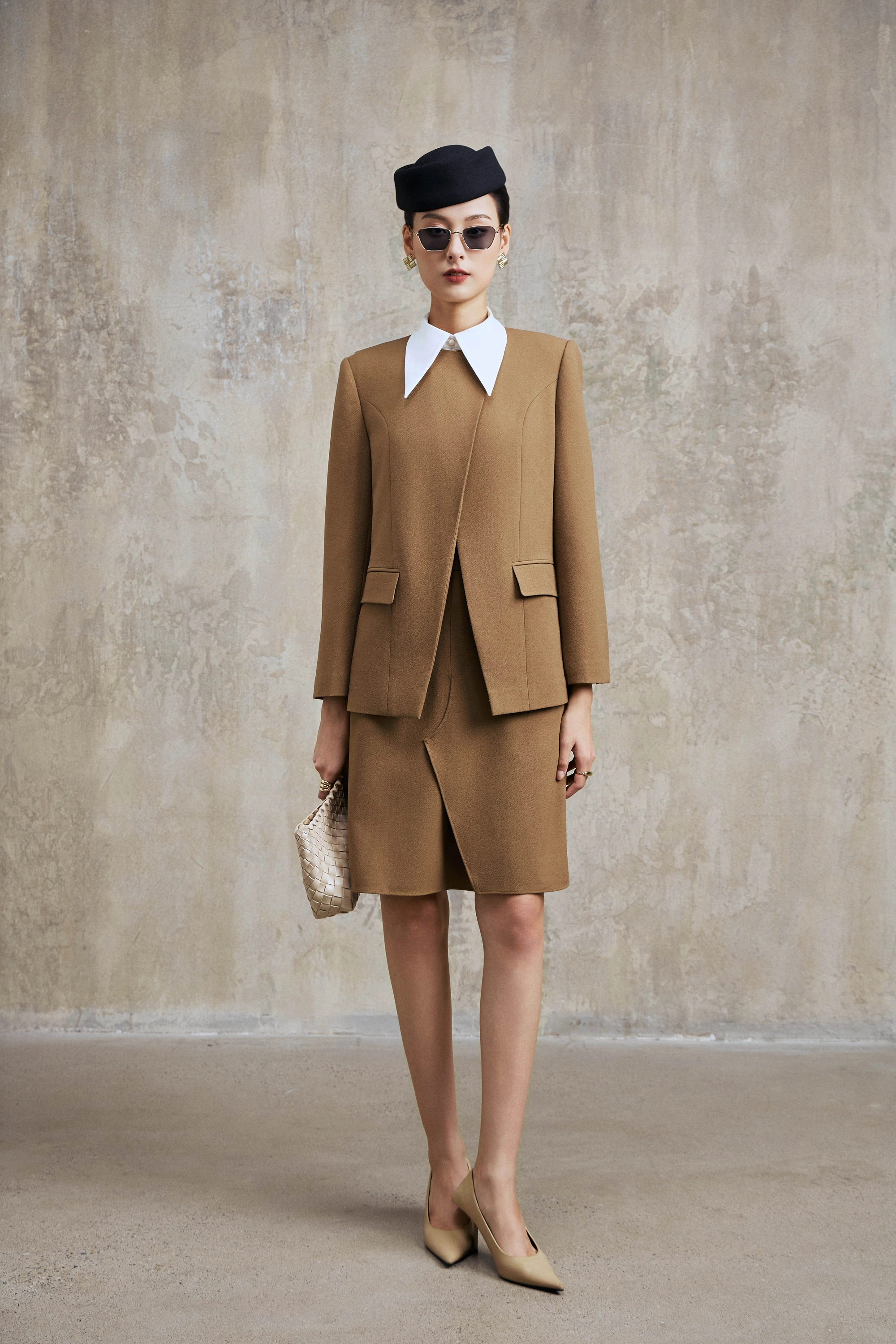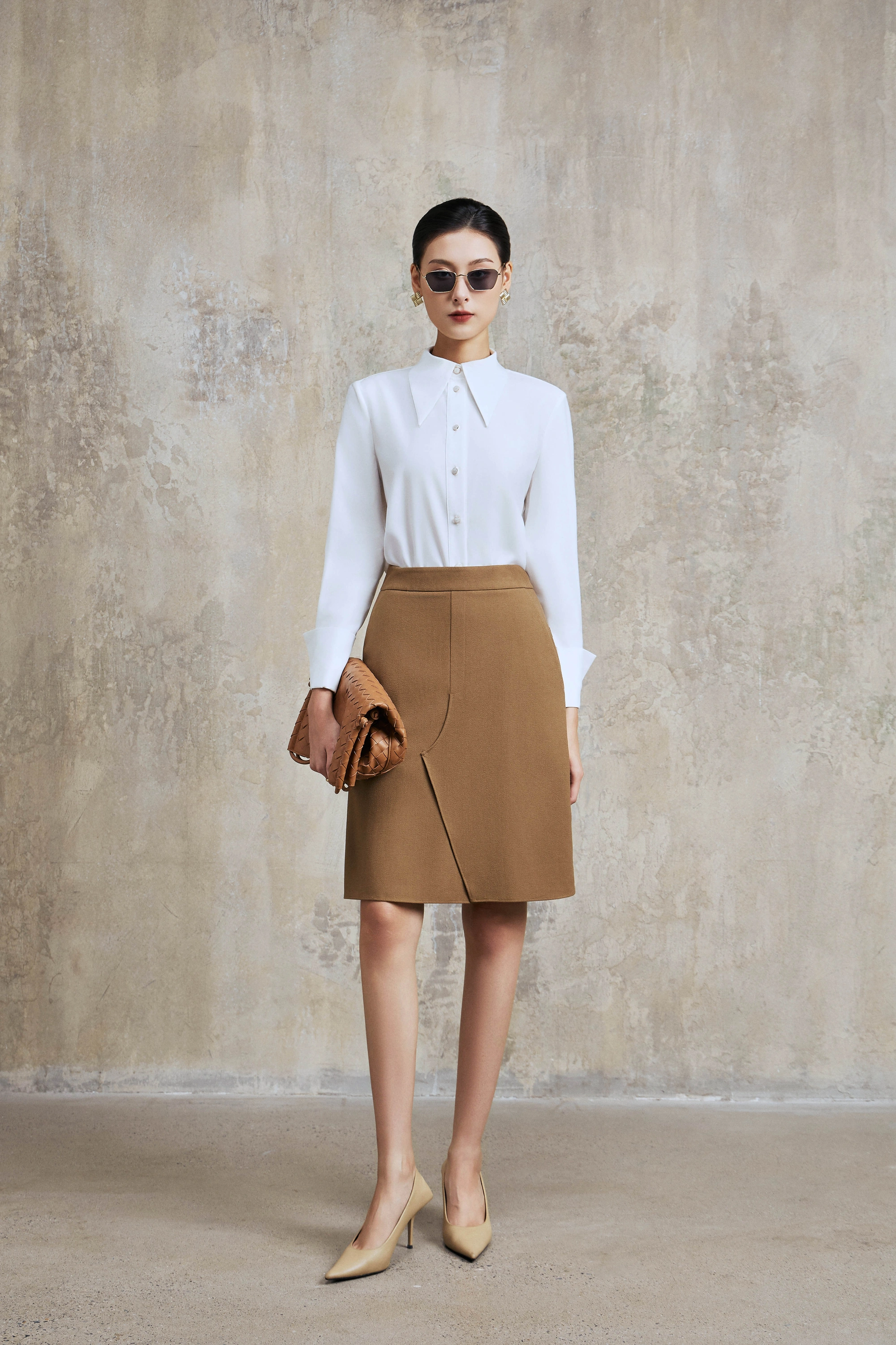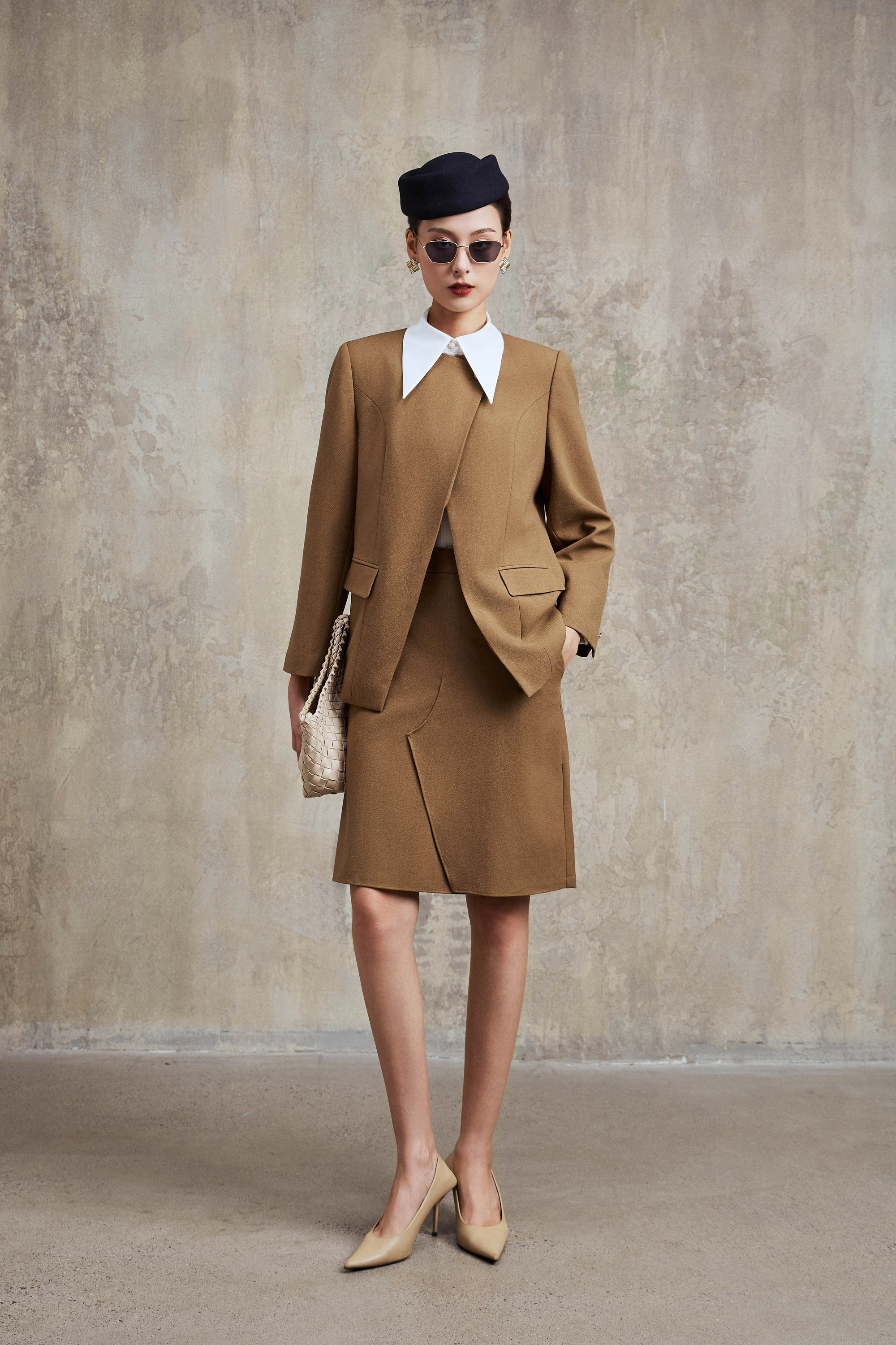 Chi tiết xếp vạt chéo không đối xứng phía trước tạo điểm nhấn.