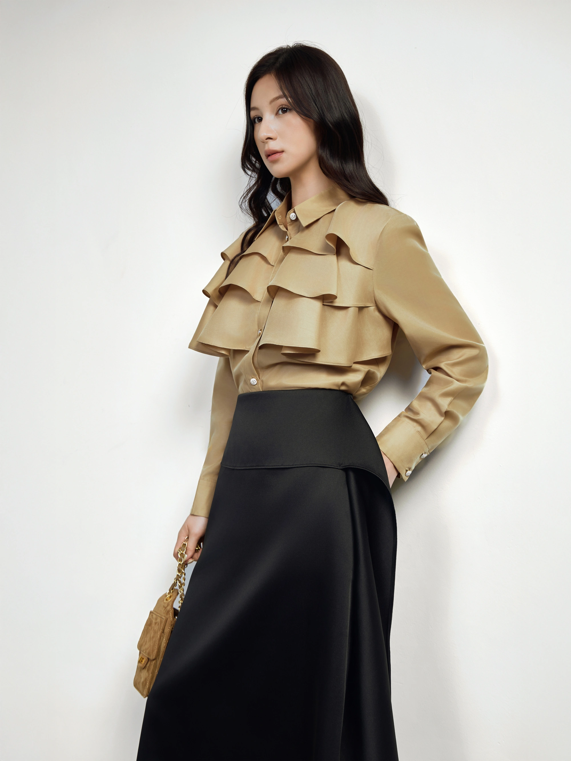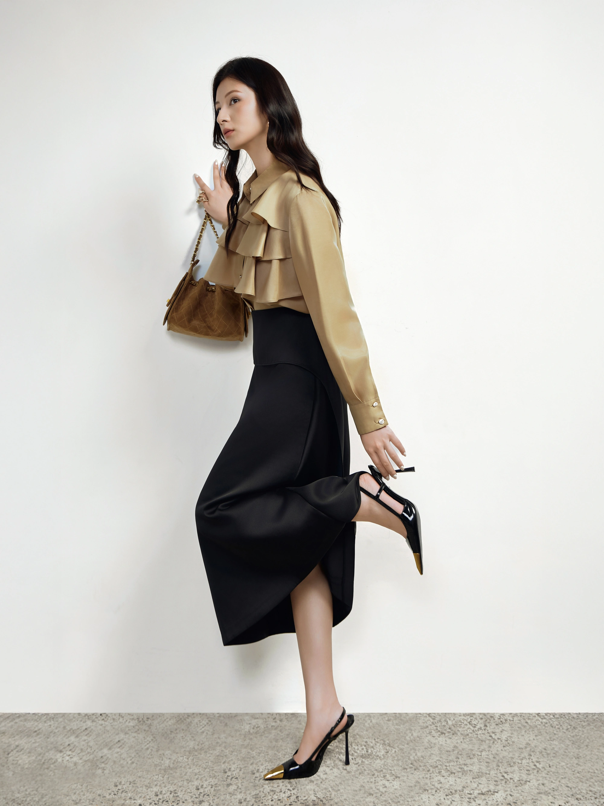 Có túi 2 bên, vòng xếp ly quanh hông tạo điểm nhấn