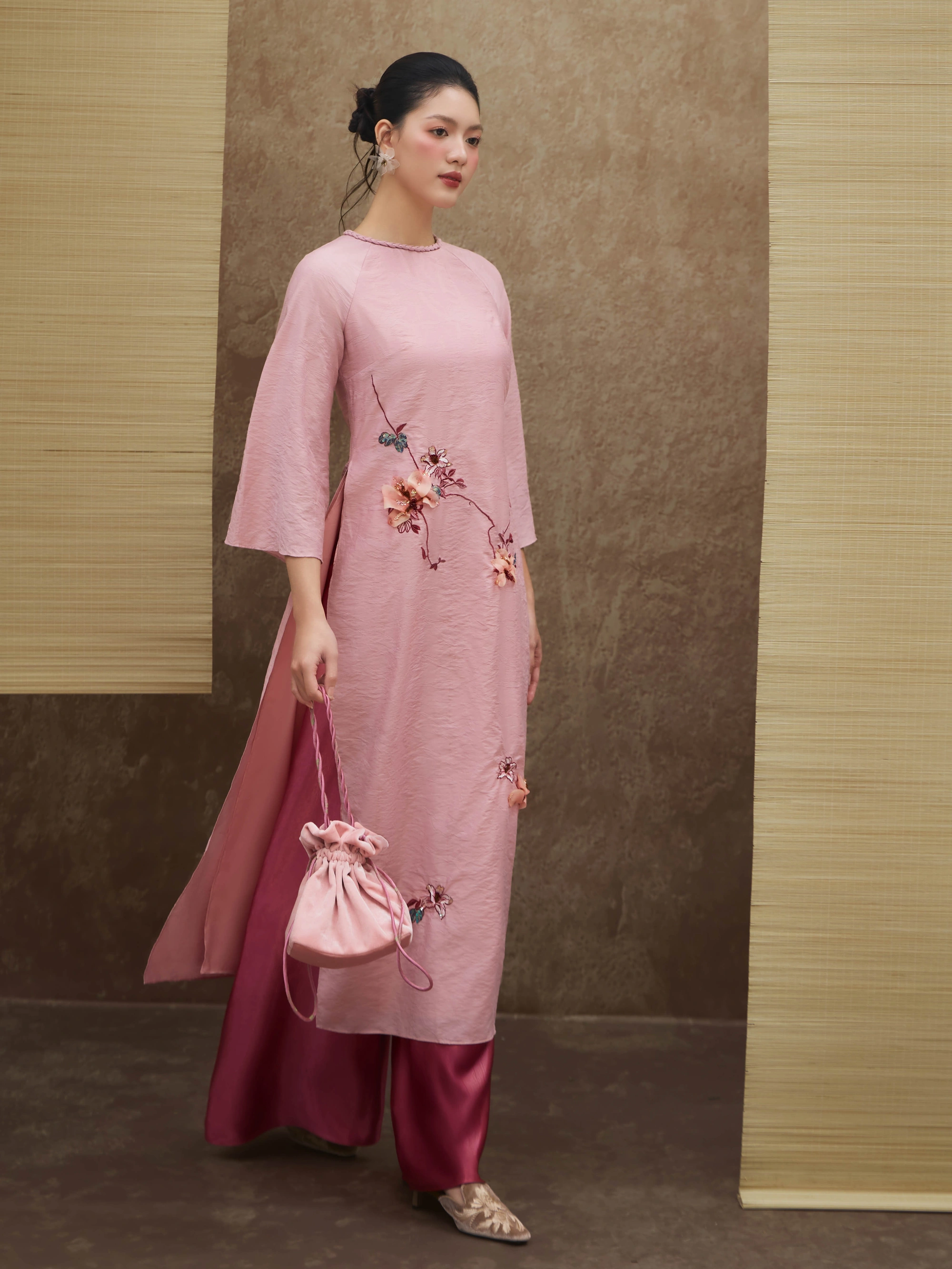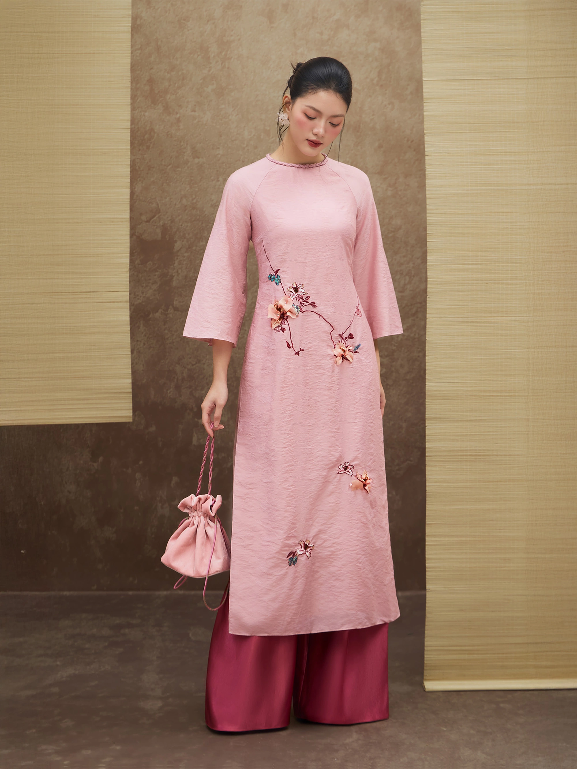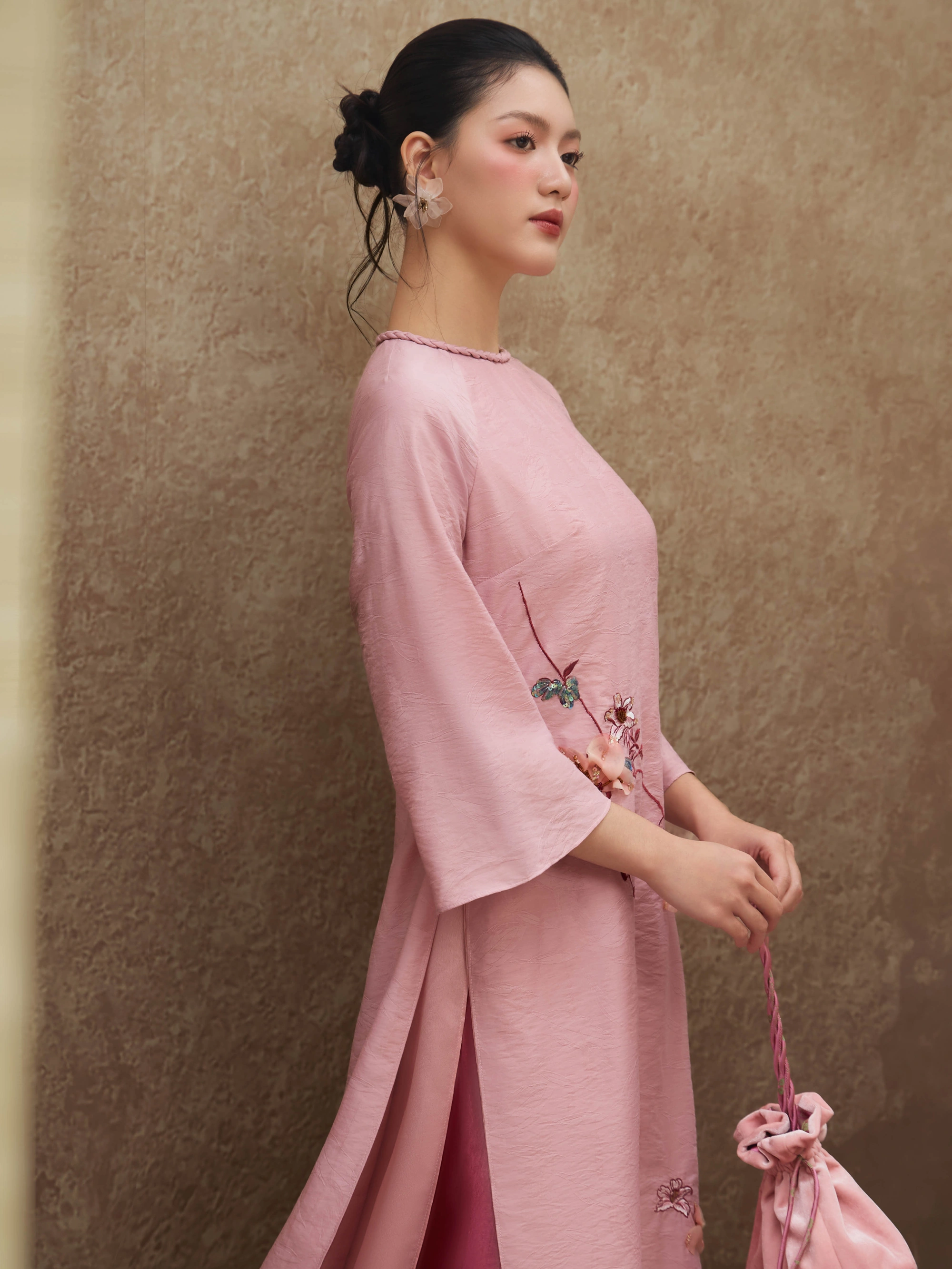 05. Bảo quản trang phục với túi giấy sạch. Không để chung với các loại vải khác để tránh bị xước vải, trong trường hợp chỉ thêu bị tuột, vui lòng buộc thắt nút ngay tại điểm bung.